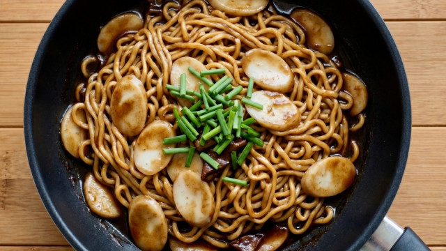 짜장 소스는 처음부터 넣지 마세요! 면이 어느 정도 익고 국물이 아직 남아있을 때 액상 소스를 넣어야 뭉치지 않고 면발과 떡에 골고루 잘 스며든답니다. 국물이 너무 졸아들어서 꾸덕해진 상태에서 넣으면 소스가 겉돌 수 있어요!